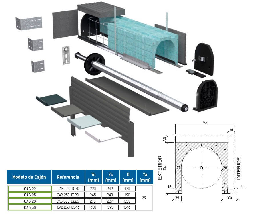 · Capialzado de cajón aislante para persianas enrollables de registro exterior.