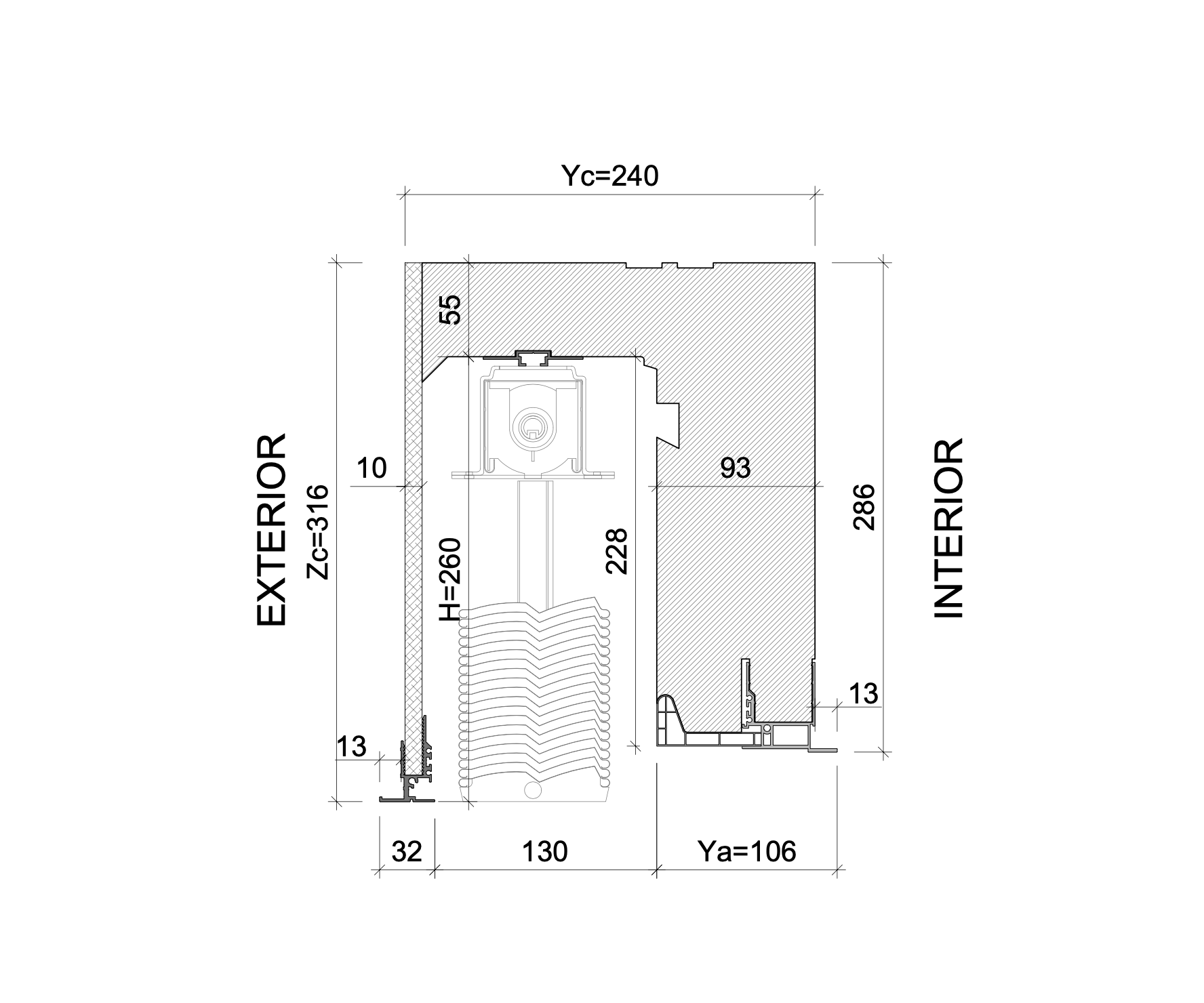 Ancho exterior (profundidad) cajón (Yc)
